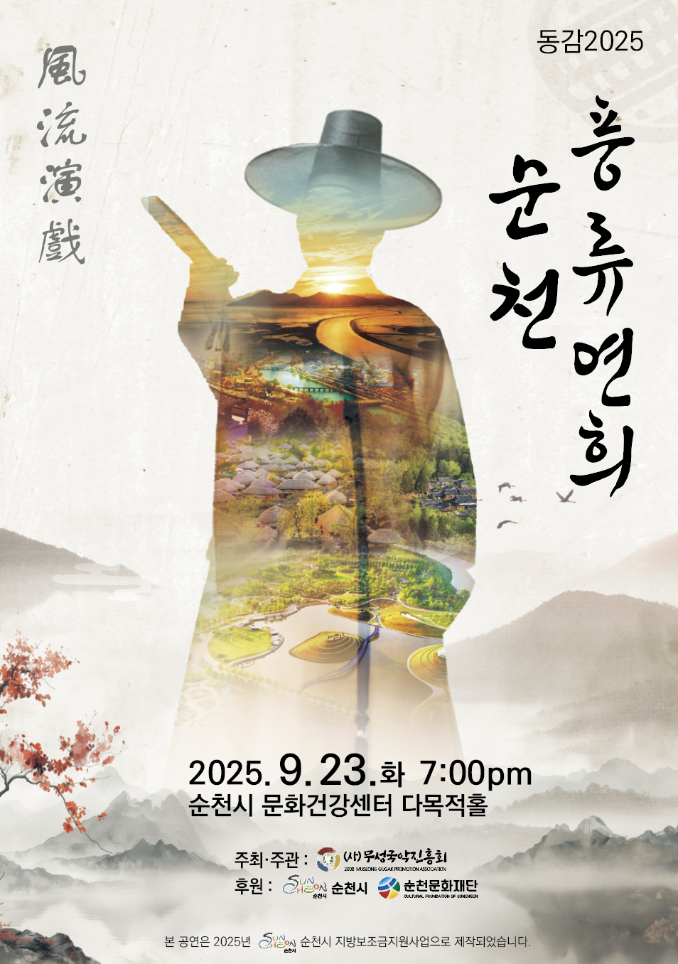 사단법인 무성국악진흥회가 순천의 문화적 가치를 높이고자 기획한 국악 공연, '풍류연희(風流演戲) 순천'을 개최한다.